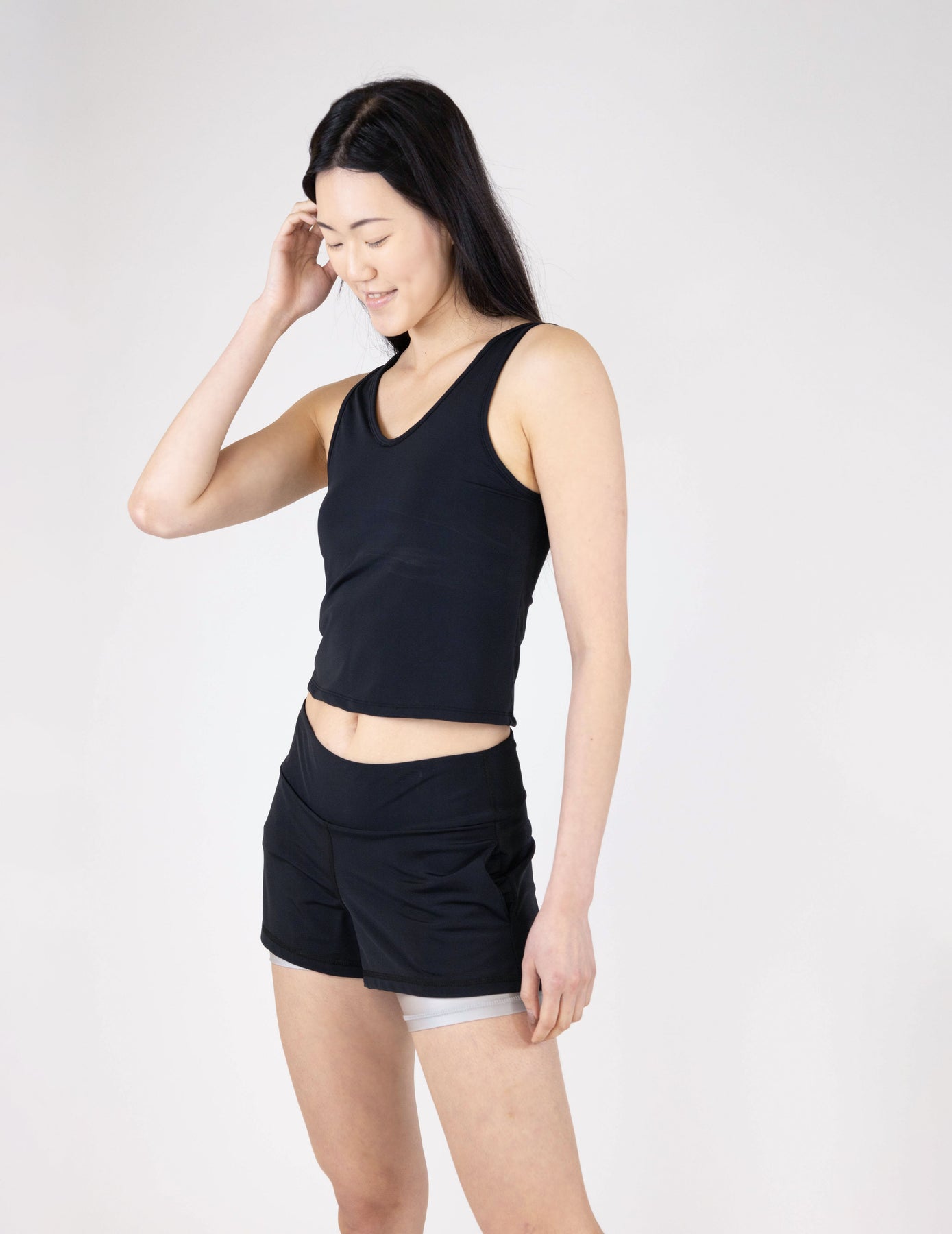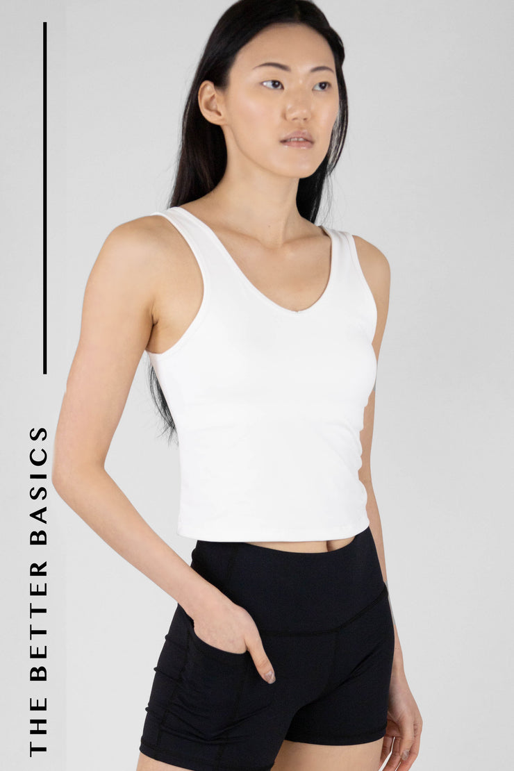 The Basic Tank features a built-in bra, low scoop back and cropped length. Weightless material and close fit will allow you to focus on your practice.