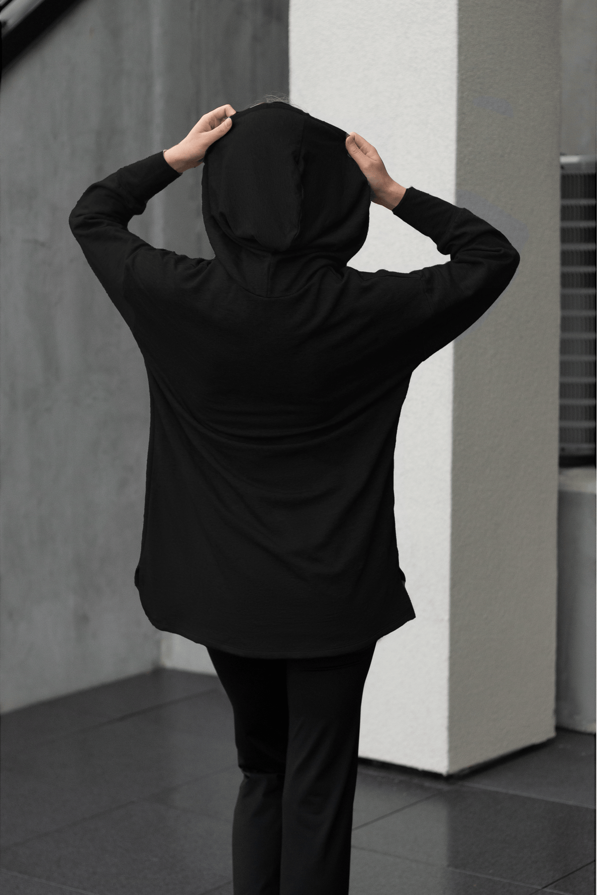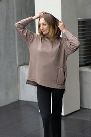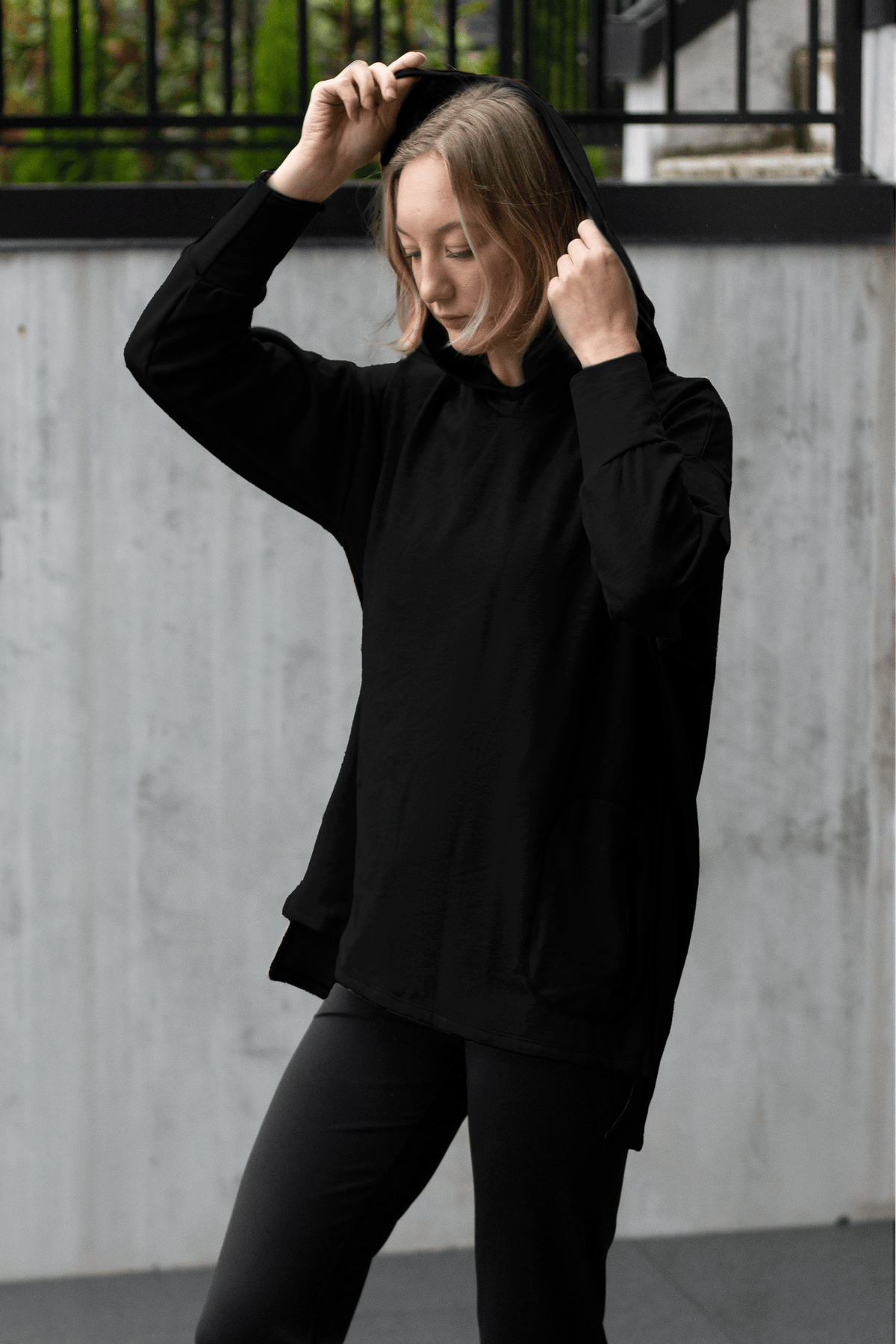 Made in our soft and cozy bamboo french terry, this is a unique take on a classic staple. This hoodie is relaxed fitting and features a patch pocket with a bold zipper to hold your small essentials. Throw on over leggings or sweats for early morning errand runs.