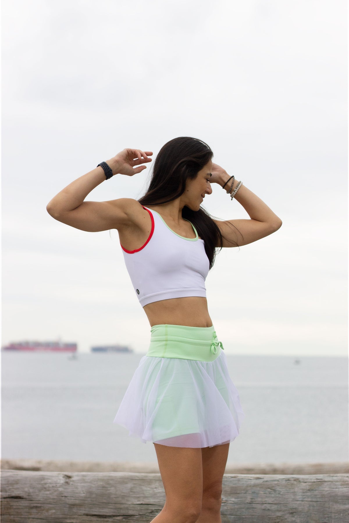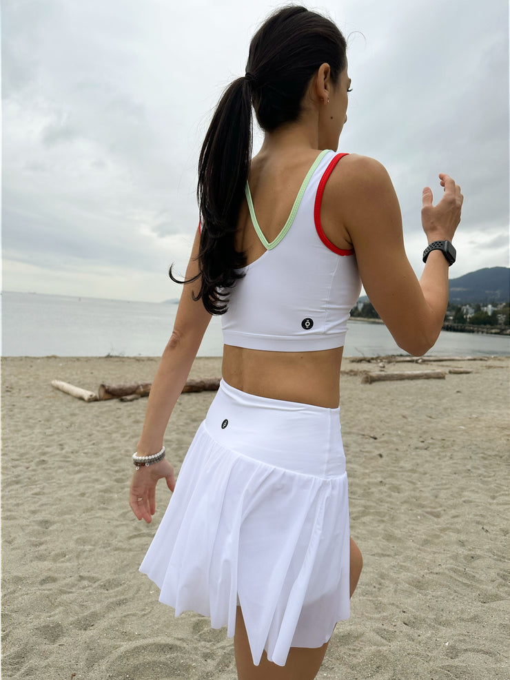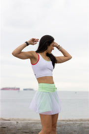 Our Tie Coast Skort features all the things you love about our Coast Skort but now with a longer under short and front tie! This sporty skort is perfect on and off the court paired with one of our sports bras or Victory Tee.